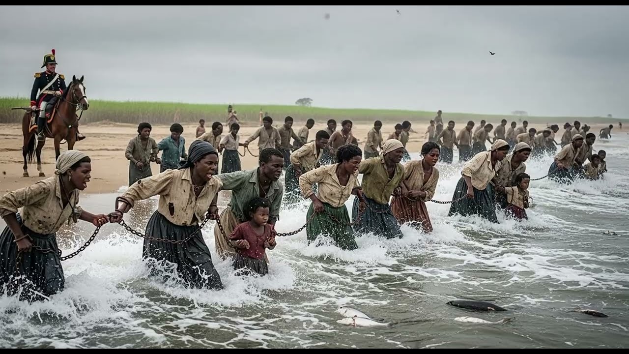 Ele gesticulou para os capatazes. Arrastem-nos para a beira. Deixem que as ondas limpem essa rebelião. Um a um, os cativos foram empurrados para o abraço mortal do oceano. Começaram pelos mais jovens, meninos de 14 anos, olhos arregalados de terror puro, gritando por mães que já haviam sido vendidas em leilões distantes. As ondas os engoliram como bocas famintas, bolhas subindo à superfície em explosões efêmeras.