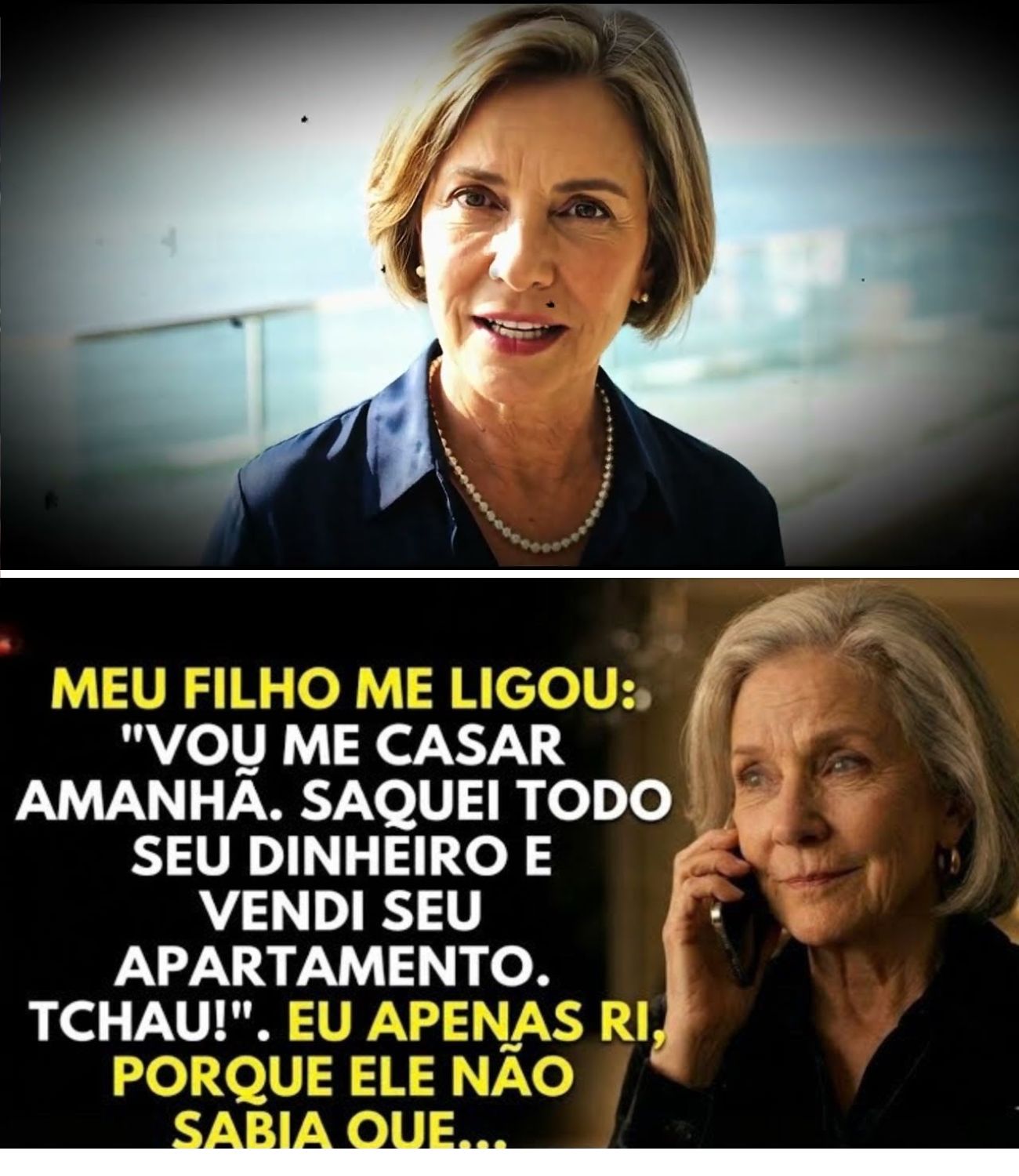 Ah, e tem mais uma coisinha. Mãe, eu fiz uma transferência de todas as suas contas bancárias para a minha Afinal, eu vou precisar pagar a festa e a nossa lua de mel em Paris. E sabe o seu apartamento de luxo na beira? Aquele que a senhora ama tanto? Eu vendi, assinei a escritura hoje de manhã, usando aquela procuração que a senhora assinou ano passado.
