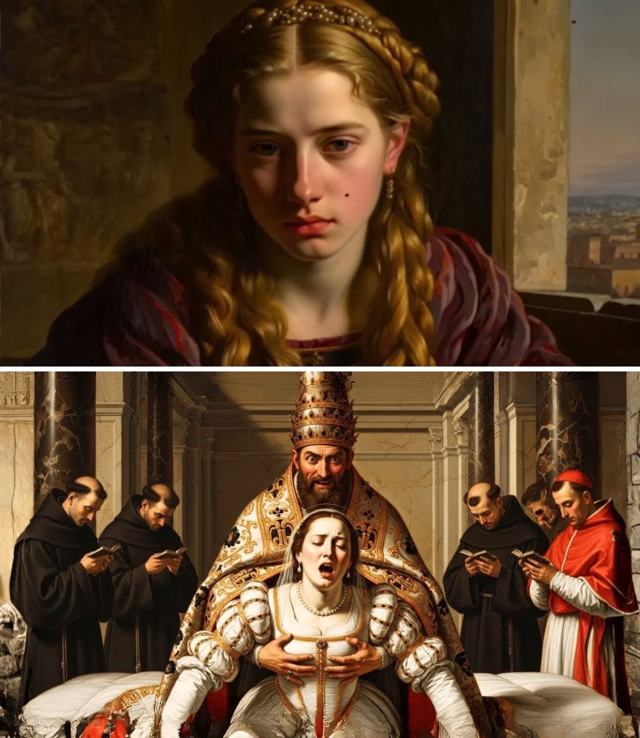mas isso foi uma nova forma de tormento. Não foi torturada fisicamente, mas sua alma foi sistematicamente destruído. Depois do primeiro ato, César Borgia ele entrou pessoalmente na sala. com frieza clínica, ele inspecionou o cama, assentiu satisfeito e anunciou o que alto o suficiente para que todos possam ouvi dizer que a primeira consumação havia ocorreu.
