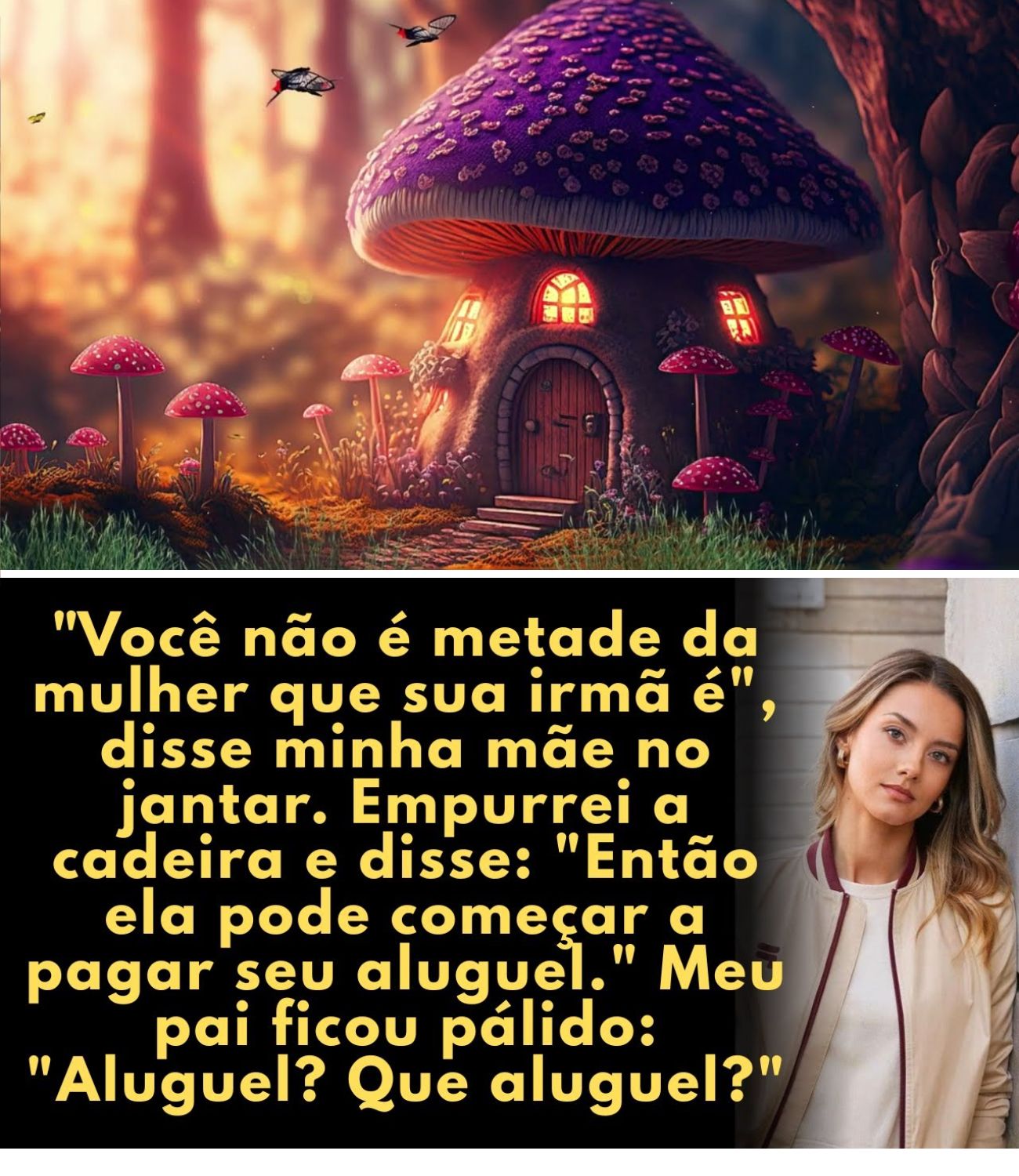 Algo dentro de mim se firmou. Empurrei-me a cadeira devagar. O som da madeira, arranhando o chão, cortou o ar ao meio. O sorriso de Vivem vacilou. Meu pai levantou os olhos, surpreso, como se tivesse esquecido que eu estava ali. Encontrei os olhos da minha mãe, minha voz mais calma do que eu me sentia. Então, ela pode começar a pagar seu aluguel.