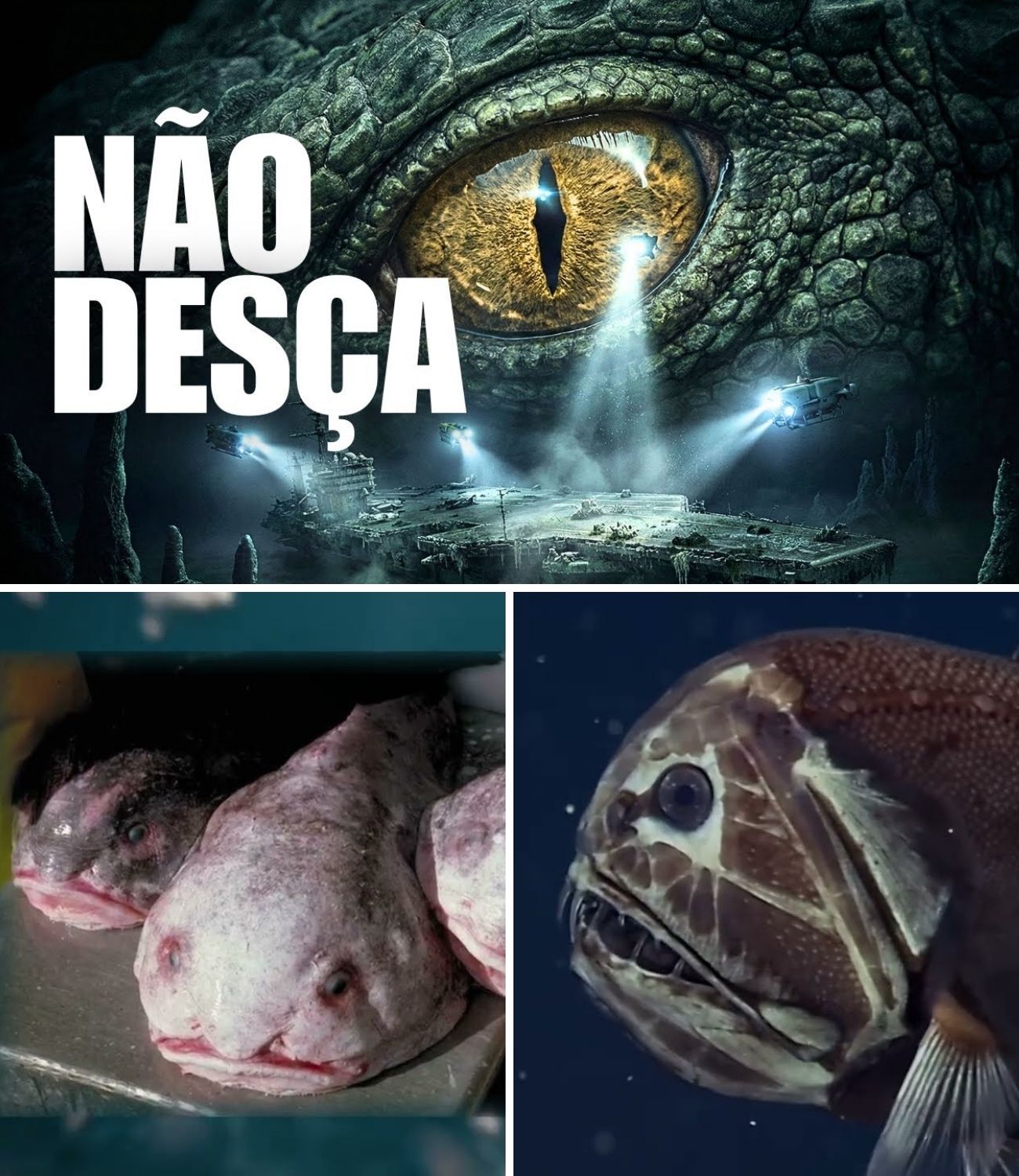 Imagine um predador que tem dentes tão longos que se tentasse fechar a boca eles perfurariam seu próprio cérebro. ou um isópode, um parente daquele bicho de conta que você encontra no jardim, mas do tamanho de um gato, ou ainda um peixe que é literalmente uma massa gelatinosa, um corpo que só mantém sua forma sob a pressão esmagadora de milhares de metros de água.