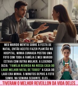 Meu marido disse que a viagem de Natal com a família dele havia sido cancelada, então eu aceitei trabalhar no plantão do hospital. Durante minha pausa, vi uma postagem da irmã dele na rede social, uma foto de um grande jantar. Estavam todos lá, menos eu. Meu marido estava sorrindo e com a mão na cintura de uma mulher que eu nunca tinha visto na vida.