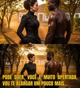 “Lembre-se do que eu prometi no pomar”, ele continuou, a voz vibrando contra a pele dela. “Eu disse que a senhora era muito apertada e que eu ia alargá-la um pouquinho. Não falava de correntes ou de chicotes. Falava de abrir espaço para a vida dentro desse peito que o coronel tentou secar. Ele a beijou então não como um submisso, mas como alguém que reivindicava um território há muito tempo abandonado.