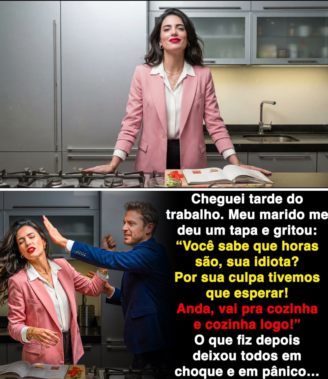 Meu marido me deu um tapa na cara porque o jantar não estava na mesa. Ele gritou: “Vai cozinhar de uma vez, mulher?” Fiquei em silêncio e entrei na cozinha por 20 minutos. Quando voltei com uma bandeja coberta, eles pensaram que era um prato delicioso, mas quando levantei a tampa, o conteúdo não era comida, mas sim uma passagem só de ida para o inferno particular deles na Terra.