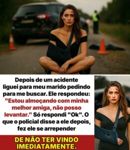 Depois de um grave acidente de viação, liguei para o meu marido e pedi-lhe vir buscar-me ao hospital. Ele respondeu por mensagem: “Estou a almoçar com a minha melhor amiga. Não posso simplesmente sair.” Eu digitei de volta. Ok. O que disse o polícia quando se aproximou-se da sua mesa no restaurante o faria desejar não me ter deixado esperando.