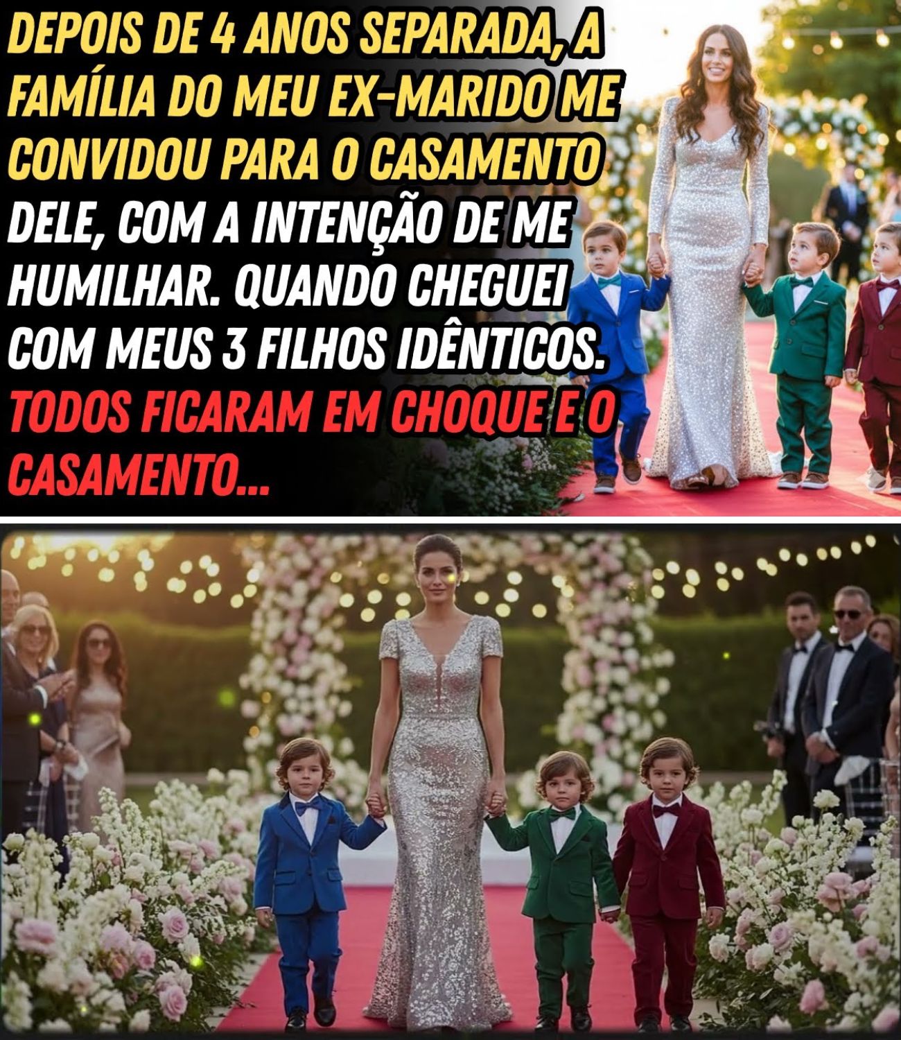 Ela entrou ladeada por três meninos idênticos, três cópias em miniatura do homem que esperava nervoso diante do altar, e o segredo que ela havia guardado por 4 anos inteiros estava prestes a transformar aquele casamento dos sonhos num verdadeiro campo de guerra. O envelope tinha textura de linho importado e exalava um perfume francês caríssimo.