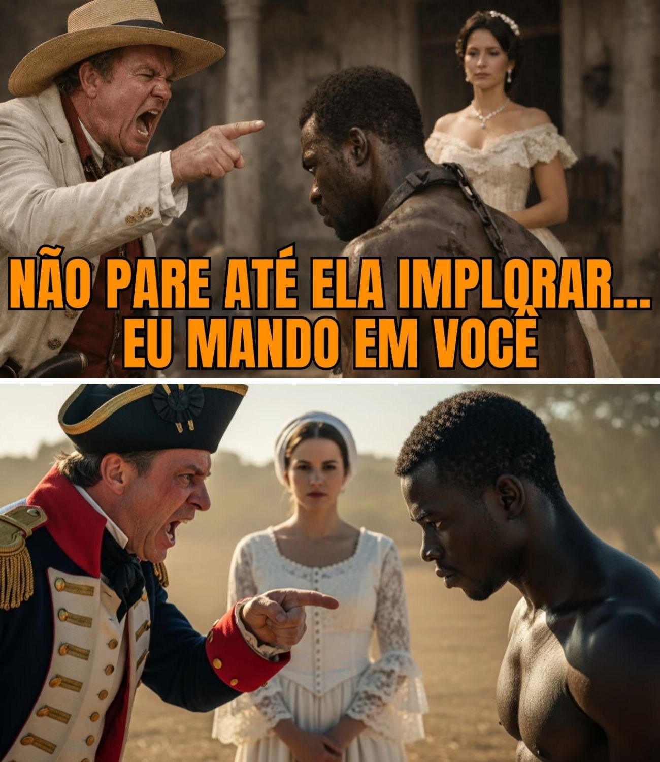 “Ele pensa que você é apenas um corpo, Bento”, sussurrou ela, virando o rosto para ele. “Ele pensa que eu sou apenas uma propriedade. Ele trancou-nos aqui para que o ódio nos destruísse. Mas ele não sabe quem tu és”. Bento suspirou. Um som profundo que parecia carregar o cansaço de gerações. Pela primeira vez, permitiu-se falar não como um escravo, mas como o homem que pensava e sentia sob o sol inclemente das plantações.