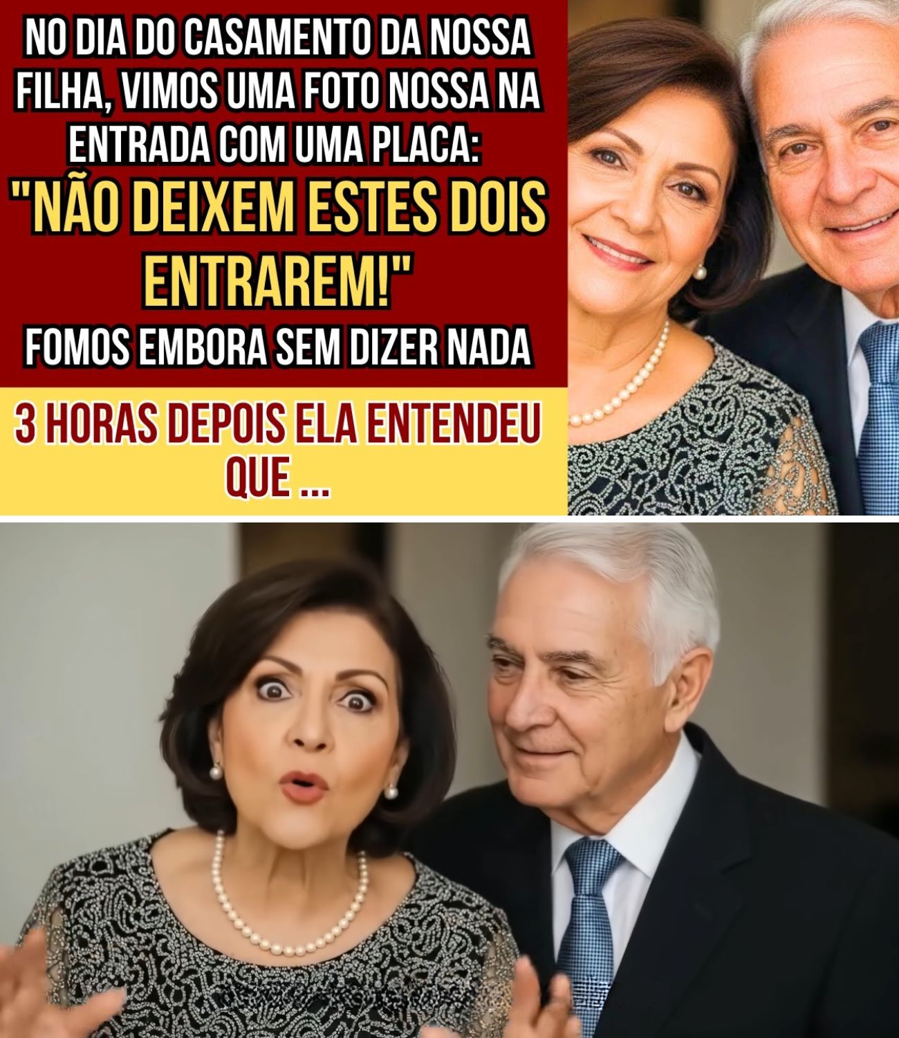 No dia do casamento da minha filha, eu e o meu marido chegamos ao salão de festas com o coração a transbordar de emoção. Depois de meses a ajudar nos preparativos, financiando cada detalhe, estava ali finalmente o grande dia. Mas quando nos aproximámos da entrada, vimos algo que nos congelou o sangue. Uma foto nossa, ampliada, colocada mesmo na porta principal com uma placa gigante escrita: “Não permitam a entrada destes duas pessoas”.