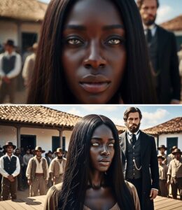 O silêncio caiu sobre o pátio do leilão quando ela foi trazida para o centro da plataforma. Mais de 200 pessoas pararam de respirar ao mesmo tempo. Nunca tinham visto nada igual. A escrava tinha cabelos negros lisos, que caíam como cascata até abaixo dos glúteos. E quando levantou o rosto, todos viram olhos cinzas, claros, que pareciam prata líquida sob o sol.