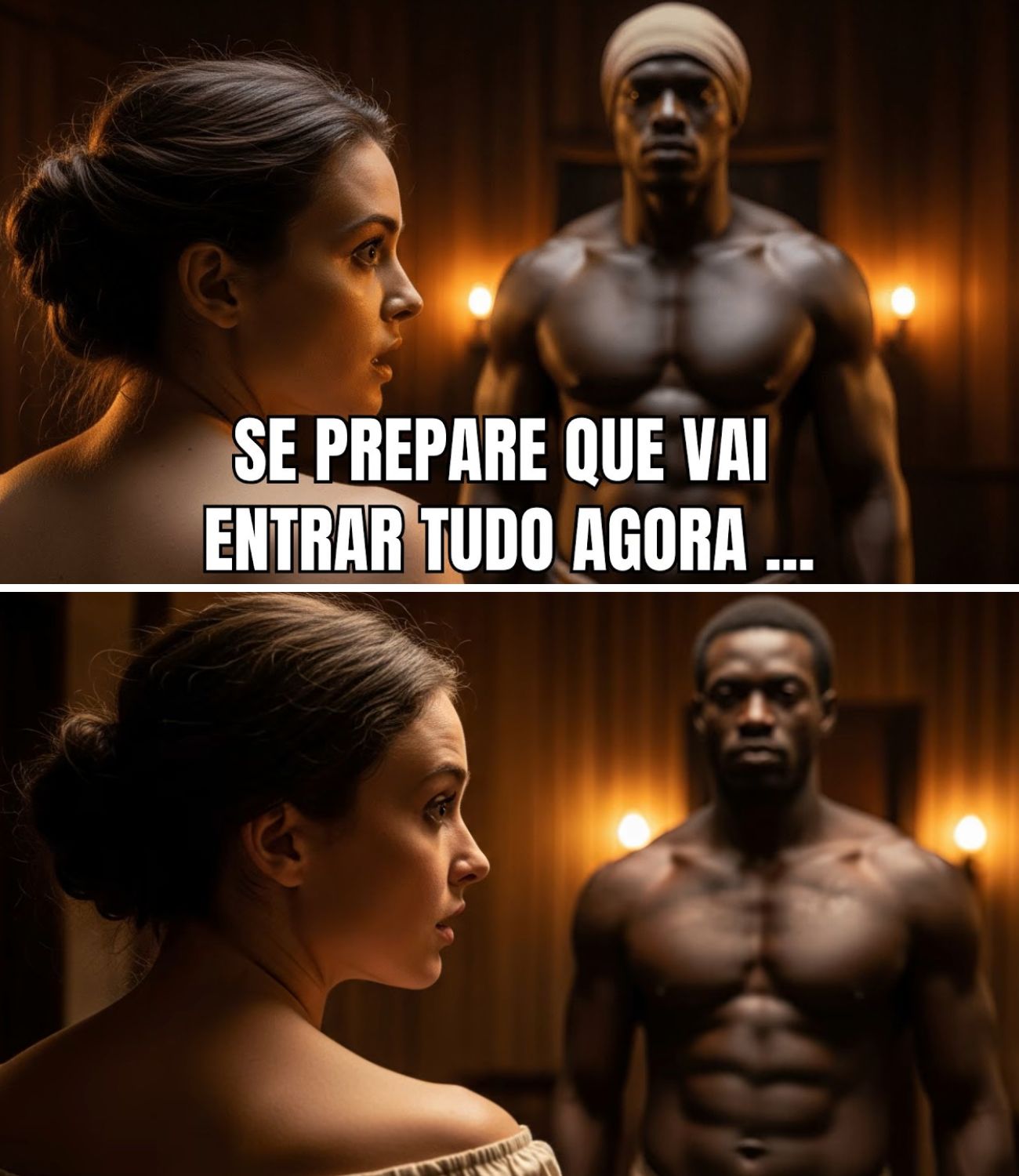 O tempo pareceu suspender-se. O som distante das moendas e o canto das cigarras tornaram-se um zumbido branco ao fundo. Ele ergueu o rosto. Os olhos dele eram brasas vivas escondidas sob cinzas. Não havia submissão ali. Havia um reconhecimento. Por um segundo proibido, ele não era um escravizado. E eu não era assim. Aá. Éramos apenas dois polos de uma voltagem elétrica prestes a romper o ar.