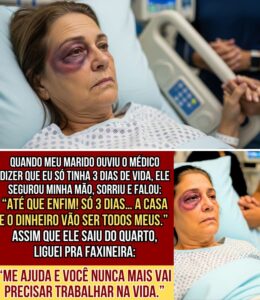 Quando os médicos disseram que eu tinha apenas três dias de vida, esperava lágrimas do meu marido, esperava desespero, negação, qualquer coisa que mostrasse que os nossos 22 anos juntos significaram alguma coisa. Mas sabe o que ele fez? Segurou a minha mão, sorriu e sussurrou muito baixinho, achando que eu estava demasiado fraca para entender.