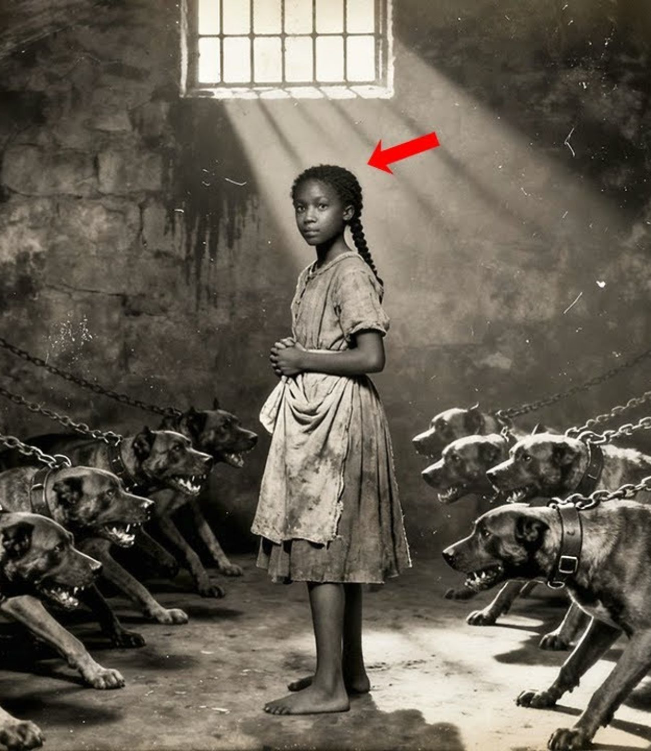 O portão de ferro do canil abriu-se com um estrondo que silenciou todos os cães num raio de 50 metros. Naomi, de 12 anos, sentiu a mão do Mestre Callaway fechar-se em torno do seu pulso fino como uma algema, enquanto a arrastava em direção aos currais onde viviam os cães de caça.  Os seus olhos brilhavam no crepúsculo da Louisiana como brasas espalhadas.
