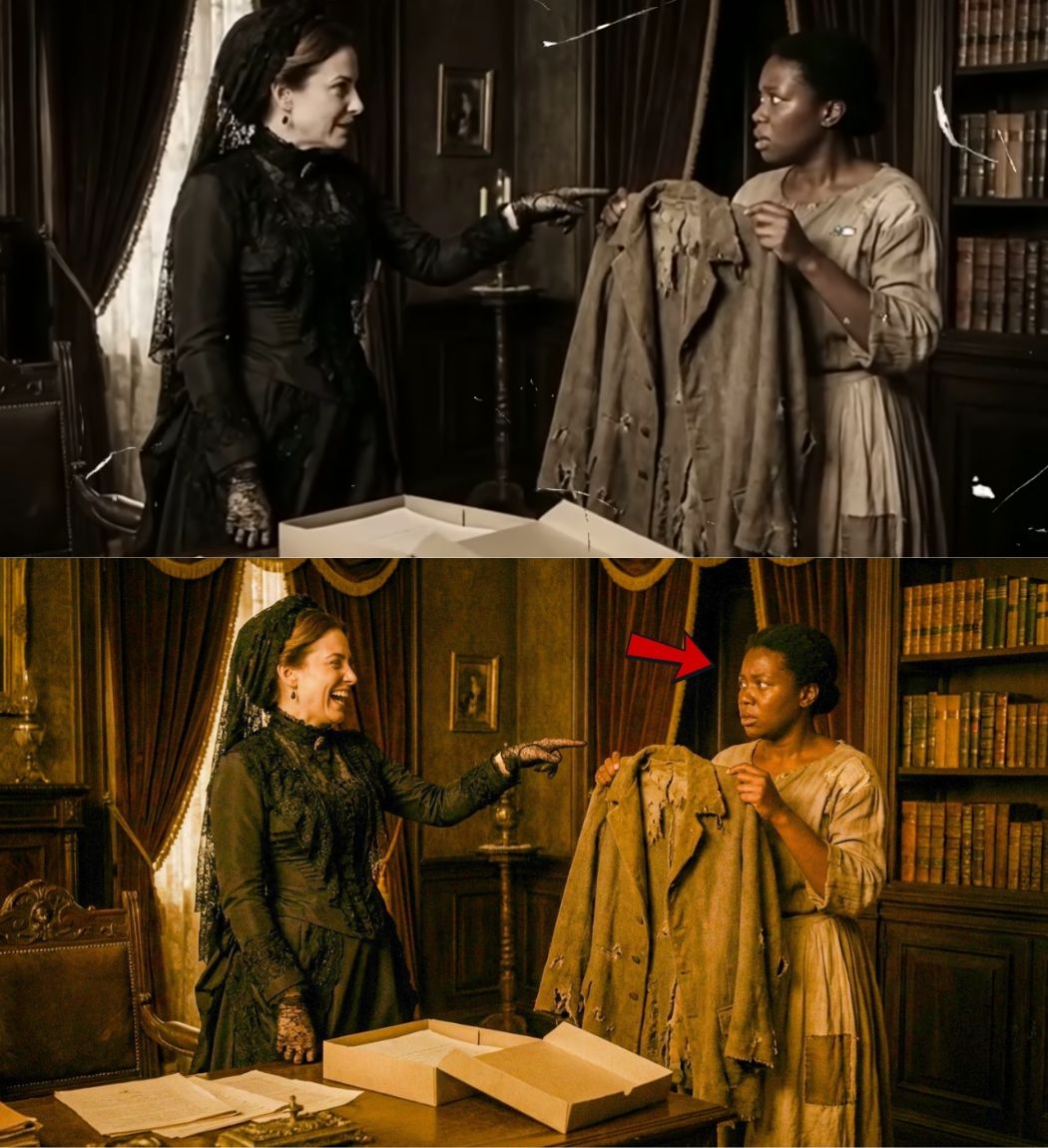 Era o pagamento por décadas de silêncio e serviço. Só que dona Carlota tinha outros planos. Com um movimento lento e teatral, ela tirou um papel do bolso do vestido. Benedita reconheceu o selo do barão. Era a sua liberdade. O coração da lavadeira bateu mais forte, mas o que aconteceu a seguir foi um golpe que ninguém esperava.