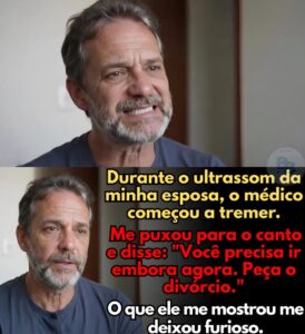 Na consulta de ultrassom da minha esposa. As mãos do médico começaram a tremer enquanto ele encarava o monitor. Ele me puxou para uma sala reservada, o rosto pálido. “Senhor, o senhor precisa sair daqui imediatamente e pedir o divórcio. Eu achei que ele tinha enlouquecido.” “O quê? Por quê?” “Não tem tempo para explicar agora, mas confie em mim. Você tá em perigo.